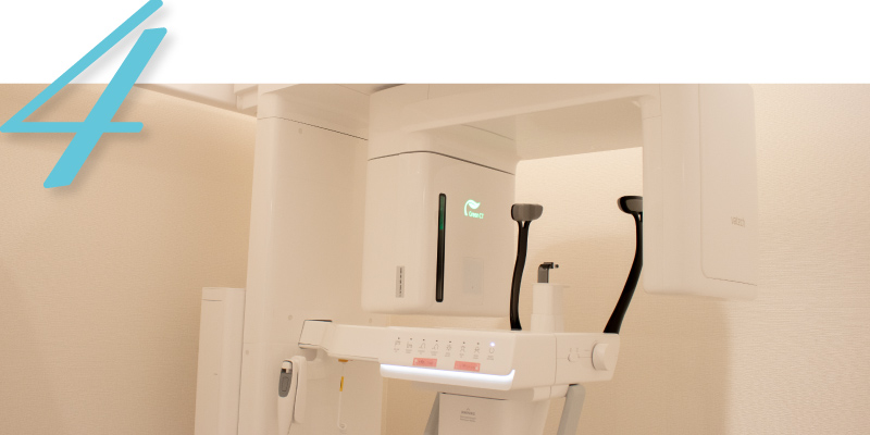 治療計画の立案や説明、治療後の状態比較を行うために、現在のお口の状態を撮影します。むし歯や歯周ポケットの深さや歯を支える歯茎、お口全体の現状を検査していきます。