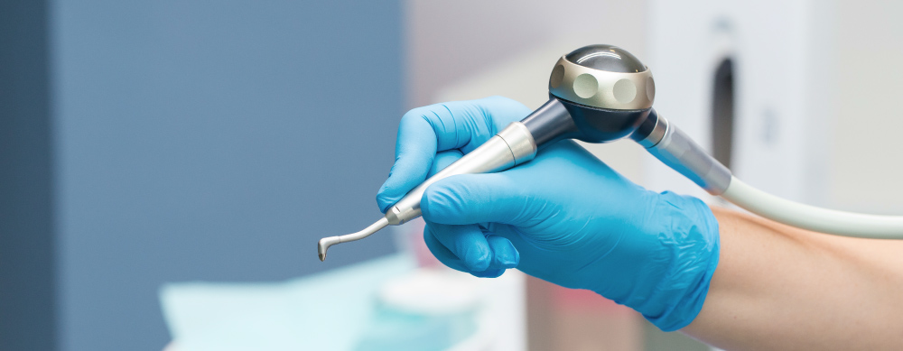 水と空気、そして超微細な専用パウダーをジェット噴射で歯に吹き付け、頑固な着色汚れ(ステイン)や細菌の塊(バイオフィルム)を短時間で徹底的に除去します。 器具が届きにくい歯の隙間の汚れもきれいに落とせる上、従来の器具のように歯をカリカリと削る感覚がなく、歯や詰め物を傷つけにくいのが特徴です。「歯石取りは不要で、着色汚れだけを重点的に落としたい」という方に最適です。