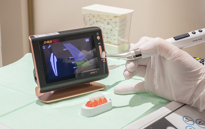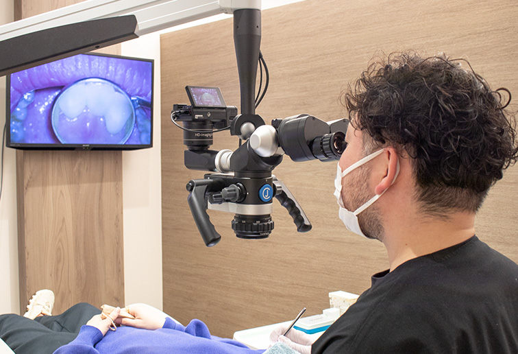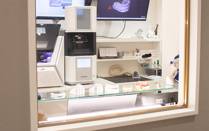 当院の特長 FEATURE 最新のデジタル設備と高度な技術で、質の高い歯科医療を 当院では、院内技工室と最新の口腔内スキャナーを完備し、デジタル技術を駆使したスピーディーな「1dayトリートメント」を実現しています。 また、治療の精度を高めるために、歯科用CT・セファロやマイクロスコープを導入。ニッケルチタンファイルを用いた精密な根管治療から、お子様から大人まで対応した矯正治療に至るまで、充実した設備環境で安心・安全な歯科医療をご提供します。 院内ラボ併設(1dayトリートメントの実現) 院内に専属の歯科技工士が常駐しているため、入れ歯やセラミックの微調整にも即座に対応可能です。 特に審美性が求められる治療では、技工士が直接患者様のお口の状態や歯の色味を確認させていただくこともあります。写真やデータだけでは伝わりにくい細かなニュアンスまで再現し、患者様のお口に調和する「自然で美しい歯」をスピーディーにご提供します。 高度医療機器の導入(CT/セファロ、口腔内スキャナー等) 歯科用CT、セファロレントゲン、口腔内スキャナーなど、精密な診査・診断に欠かせない医療機器を完備しています。 従来のレントゲン(2次元)では確認できなかった骨の厚みや神経の位置、顎の骨格などを3次元的に把握することで、インプラントや矯正治療などの専門性の高い治療においても、リスクを抑えたより確実性の高い治療計画の立案が可能です。 デジタル技術を用いた歯科治療の提供 歯科用CTやデジタルスキャン技術を活用し、肉眼や平面のレントゲンでは確認しづらい骨の状態や神経の位置、歯の細かな形状までを3次元で詳細に把握します。 感覚や経験だけに頼るのではなく、デジタルデータに基づいた客観的な診断と緻密な治療計画を行うことで、より精密で長持ちすることを目指した治療をご提供します。 マイクロスコープ、ニッケルチタンを用いた精密根管治療 根管治療の成功の鍵は、細菌に感染した神経や汚れをいかに「取り残さないか」にあります。 強力なライトと拡大視野を持つマイクロスコープで微細な汚れを発見し、従来のステンレス製器具よりも弾力性のあるニッケルチタンファイルを用いることで、複雑な形状の根管も隅々まで清掃・消毒します。精密な処置により、治療後の痛みや再感染のリスク低減を目指します。 矯正(子供~大人に対応した矯正治療) お子様の顎の成長を利用して骨格から整える「小児矯正」から、見た目と噛み合わせの改善を目指す「成人矯正」まで、幅広い年代の矯正治療に対応しています。 歯並びの悩みは年齢によって異なります。精密検査(セファロ撮影等)に基づき、お一人おひとりのライフステージやご希望に合わせて、開始時期や装置の種類など最適な治療プランをご提案します。 院内設備 FACILITIES 「歯科医院特有の雰囲気が苦手」という方にもリラックスしていただけるよう、院内はホテルライクで落ち着いた内装にこだわりました。診療室はプライバシーに配慮した半個室設計。パウダールーム(トイレ)も広々と清潔に保たれています。 看板 待合室 診療室 患者用トイレ キャッシュレス機器 院内技工室 滅菌機器 ワイヤレス口腔内スキャナー CT/セファロ デンタルX線 マイクロスコープ ニッケルチタンを用いたエンド治療 美容メニューで使用する機器 半個室(プライベート空間) 患者様へのご案内 保険医療機関における書面掲示 医療DX推進体制整備加算(医療DX)について 当院は、医療DX推進の体制に関する事項および質の高い診療を実施するために十分な情報を取得し、及び活用して診療を行っています。 歯科技工士との連携1・2(歯技連1および歯技連2)について 当院は、患者さんの補綴物作製に際し、歯科技工士および歯科技工所との連携体制を確保しています。また、必要に応じて情報通信機器を用いた連携も実施いたします。